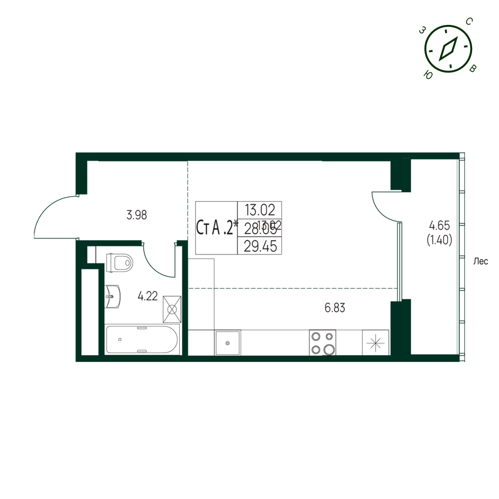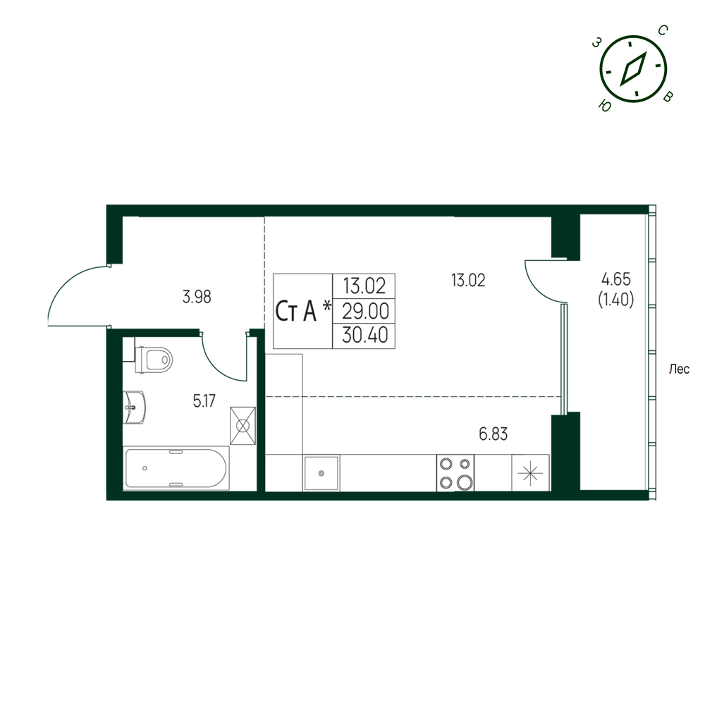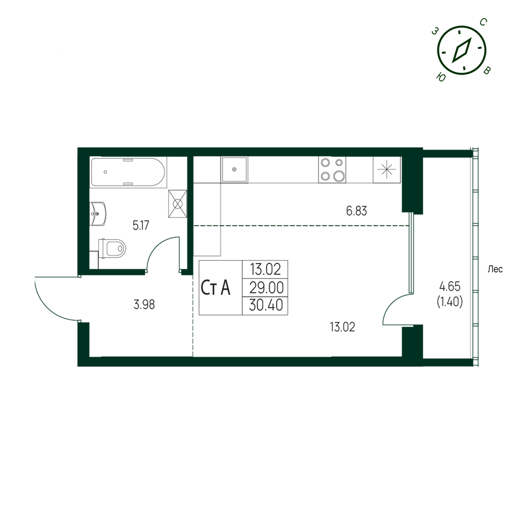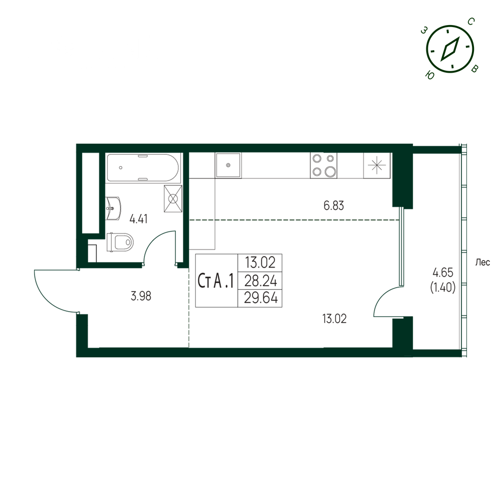 - № 1301, Секция 1, Этаж 14