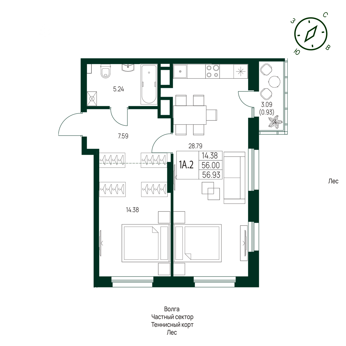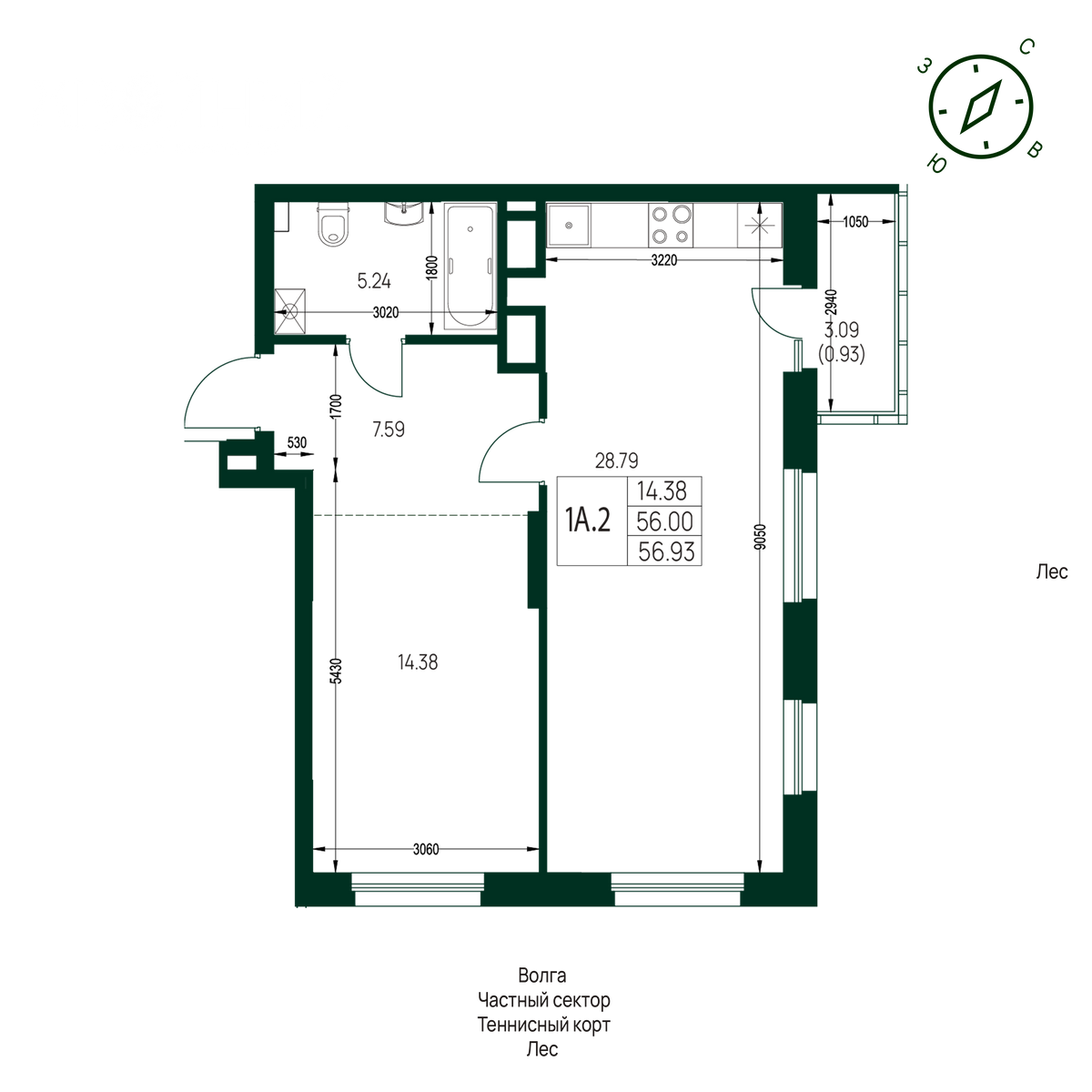 56.93 м